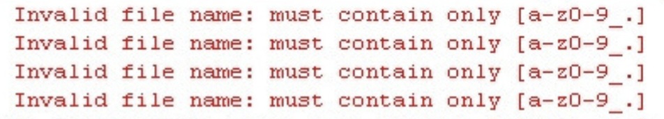 "Invalid file name: must contain only [a-z0-9_.]" 오류의 가장 직접적인 원인은 시스템이나 서버에서 허용하지 않는 문자를 파일명에 사용했기 때문입니다.