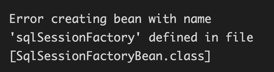 SqlSessionFactory Bean 생성이 실패하면 Spring Boot 애플리케이션 전체가 시작되지 않습니다. 이는 단순한 기능 오류가 아니라 애플리케이션의 초기화 단계에서 발생하는 치명적인 문제입니다.